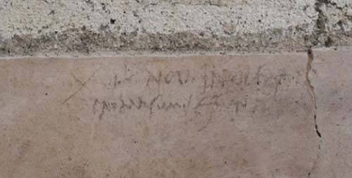 O graffiti encontrado é uma inscrição em carvão que atrasaria essa data até outubro, em vez de agosto, já que contém uma data: