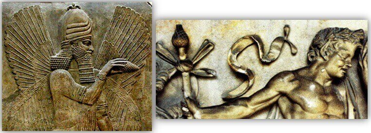 Deus sumério Anunnaki(esquerda) – Dionísio(direita)