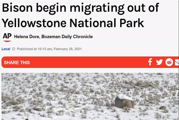 O Buffalo Field Campaign(vale a pena ler), um grupo de conservação que defende o fim do abate anual de bisões, monitora regularmente o movimento dos bisões.