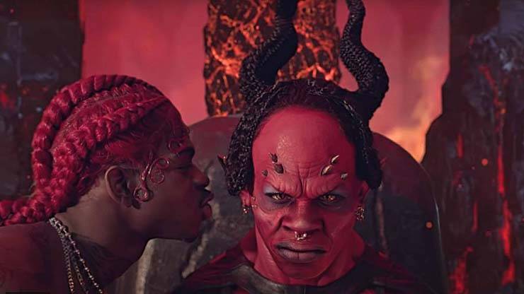 O rapper é então mostrado quebrando o pescoço do demônio, antes de remover sua coroa de chifres e colocá-la.