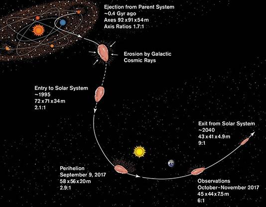 Visível apenas como um ponto de luz a milhões de quilômetros de distância em seu foco mais próximo, ele foi determinado a se originar além de nosso sistema solar porque sua velocidade e trajetória sugeriam que ele não estava orbitando o Sol ou qualquer outra coisa.