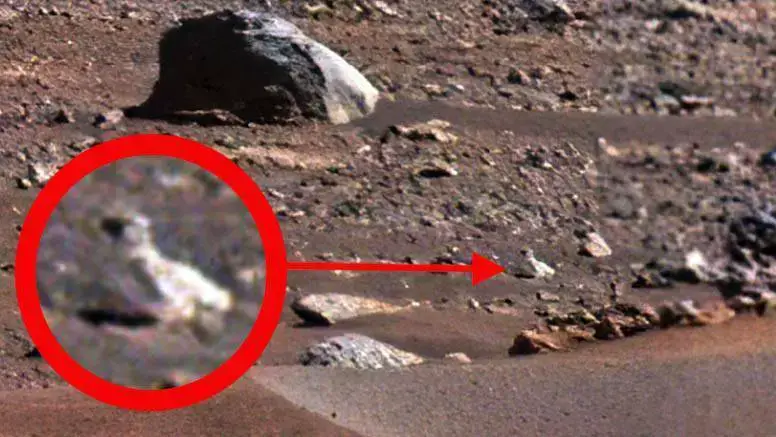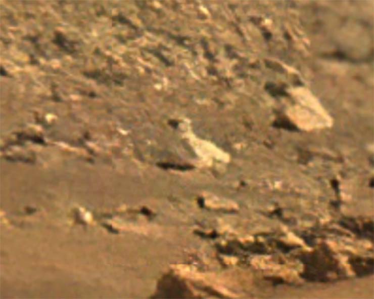 E, anteriormente, nas imagens publicadas pela NASA era possível ver objetos de origem artificial, como objetos brilhantes em um pequeno monte, uma caveira com a boca aberta ou um pequeno objeto redondo deixando um rastro ou alguns pequenos passos atrás dele(clique aqui para ver).