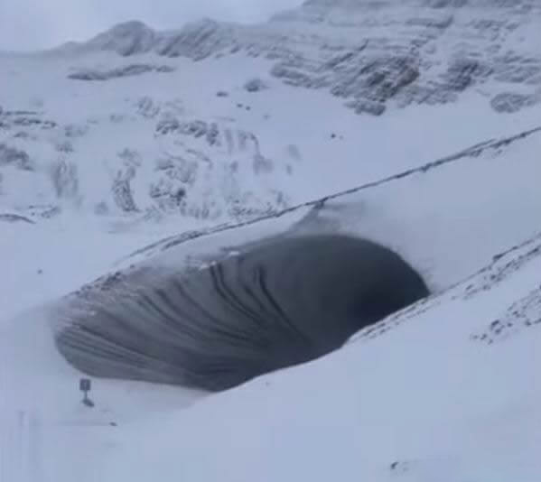 Outra descoberta curiosa surgiu em 2010, quando o arqueólogo virtual Joseph P. Skipper encontrou uma grande abertura triangular no Google Earth. A entrada, medindo cerca de 30 por 100 metros, parece levar para o interior de uma formação rochosa, o que levantou hipóteses de que poderia ser uma base subterrânea. Há até especulações de que OVNIs utilizariam essa abertura para emergir na superfície.