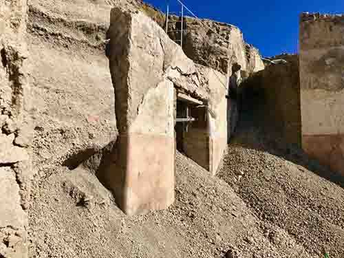 O lugar onde foi encontrado é uma casa com um jardim que tem um alpendre abundantemente pintado e decorado com mosaicos, dentro do qual apareceram numerosos objetos, assim como os restos de vítimas e inscrições.